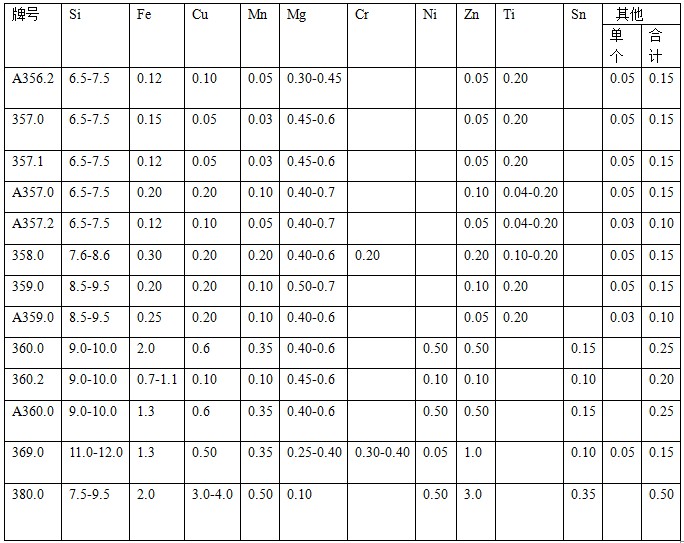 360铝锭 A360铝锭  A360.0铝锭化学成分如下: